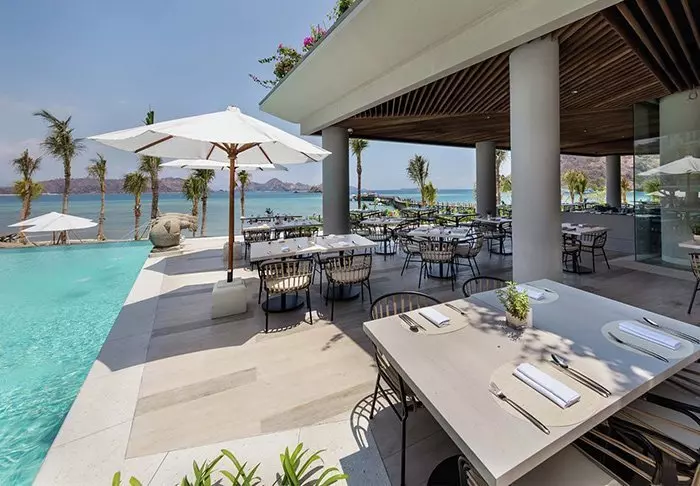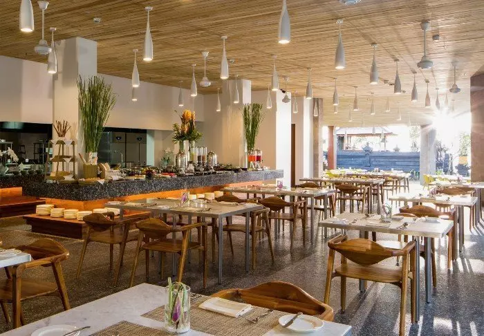 Når du blir sulten, serverer hotellets restaurant et utvalg lokale og internasjonale retter su kan spise med panoramautsikt over stranden.