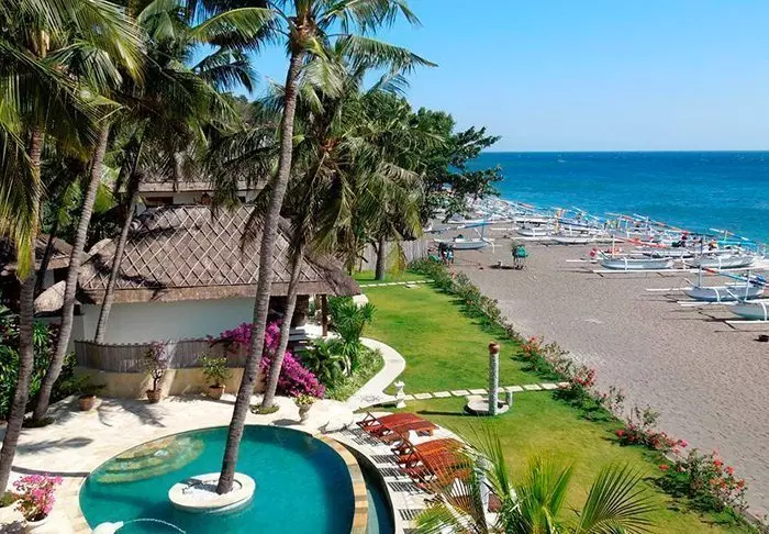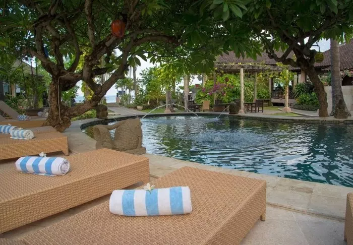 Lovina-resorten ligger helt nede på Lovinas mørke vulkanske strand mellom Kalibukbuk-fjellkjeden og Balihavet. Her kan du få mest mulig ut av den 200 meter lange private stranden med solsenger, og ta inn utsikten over det blå havet med alle de ikoniske fiskebåtene.