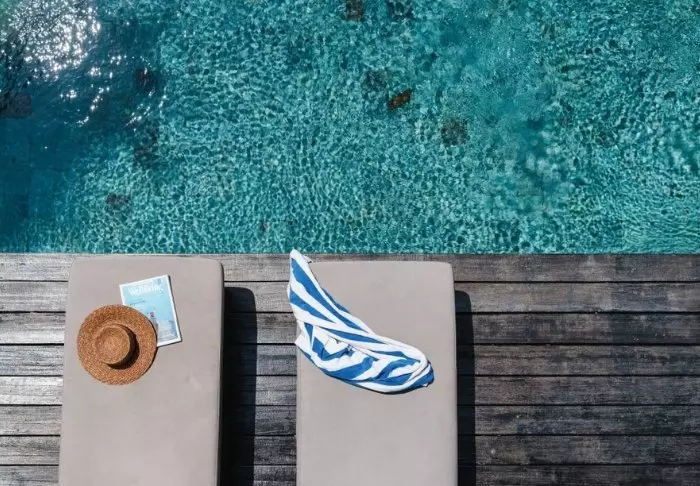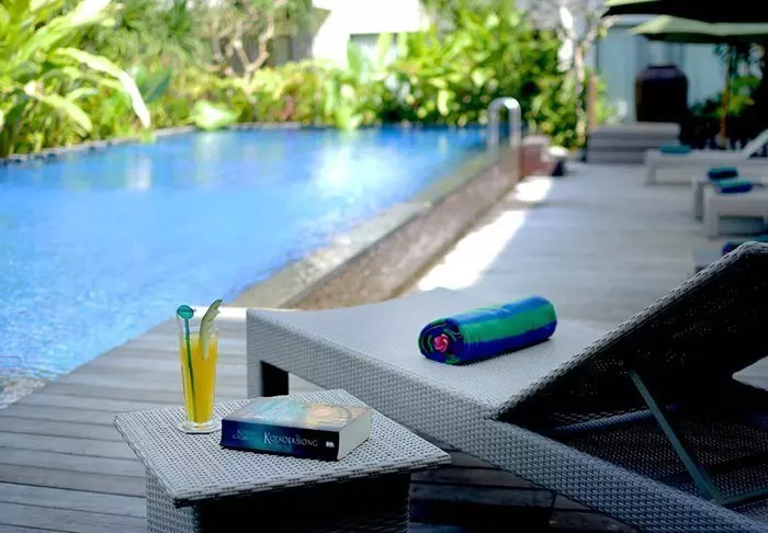 Etter en dag i bølgene kan du slappe av i hotellets vakre bassengområde og senke skuldrene i solen med en god bok.