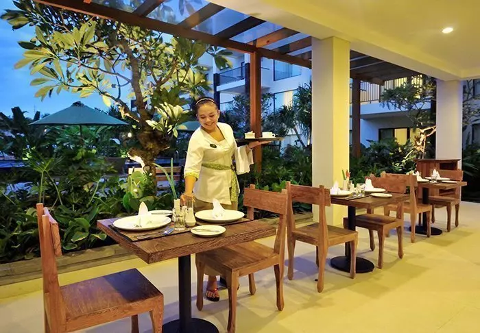 Hotellet har også en herlig liten restaurant der du kan utforske balinesisk mat og internasjonale favoritter – enten innendørs eller utendørs under åpen himmel.