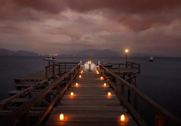Restauranten ligger helt nede ved stranden, og det er mulig (mot betaling) å arrangere en helt privat, romantisk middag på balkongen din eller kanskje på en avsidesliggende del av stranden.