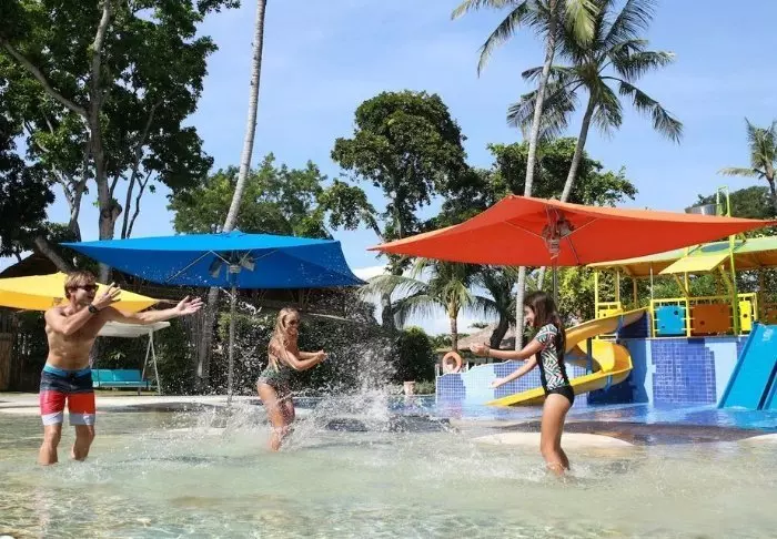 Hotellet tilbyr et stort utvalg forskjellige vannsportsaktiviteter, men du kan naturligvis også bare slappe av på en liggestol i skyggen av palmene. Hvis du foretrekker å bade i svømmebasseng, blir du ikke skuffet på Puri Santrian – her er det to basseng, der det er plass til både barn og voksne. Svøm bort til den nedsenkede poolbaren og få en cocktail i varmen – la feriestemningen synke inn!