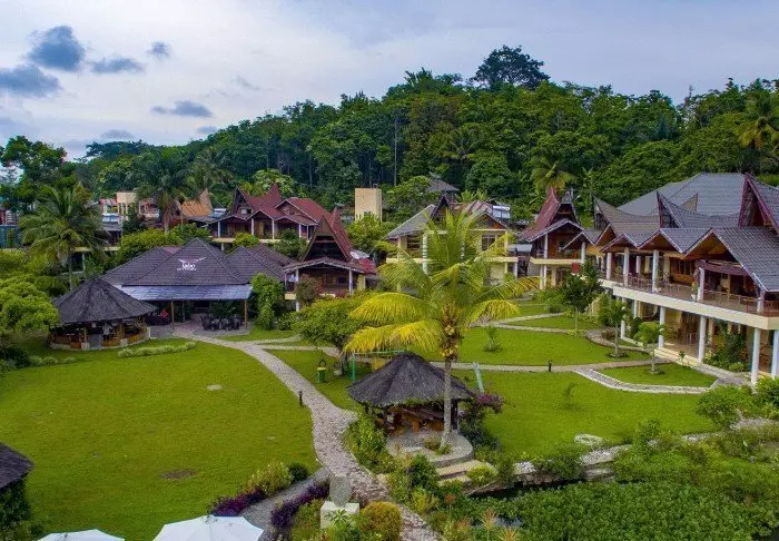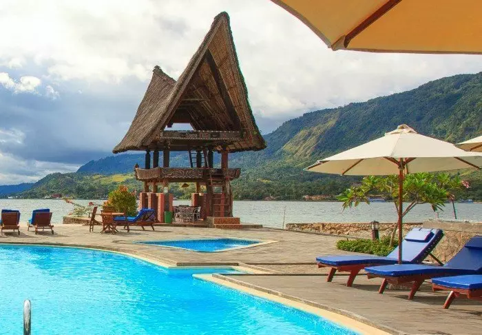 På øya Samosir midt i kratersjøen Toba ligger dette hyggelige hotell omgitt av rismarker og plantasjer. Hotellet er innredet i naturlig og tradisjonell stil, og har en storslått utsikt over sjøen og fjellene. Beliggenheten, den unike stilen og den frodige tropiske hagen gir en fantastisk og avslappet atmosfære.