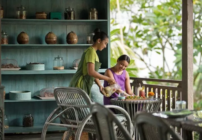 Alle ansatte kommer fra lokalsamfunnet og hotellet legger stor vekt på å bevare den balinesiske kulturen og områdets gamle tradisjoner og skikker. Derfor tilbys det også mange aktiviteter og underholdning i form av både matlagingskurs, yoga, meditasjon og balinesisk musikk og dans.