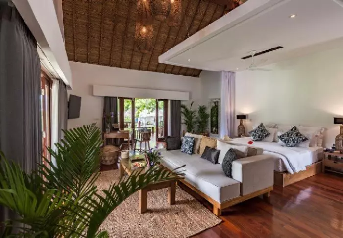 Som standard bor du i en av de sjarmerende hagehyttene omgitt av palmetrær og tropiske planter. Rommene er store og innredet i lyse farger med flotte treelementer. Alle rom har moderne bekvemmeligheter som aircondition, Wi-Fi, minibar, safe, kaffe- og tefasiliteter og flatskjerm-TV. Rommene har også privat terrasse/balkong der du kan nyte morgenkaffen i ro og mak. De delvis utendørs badene har dusj og hårføner, og naturligvis er det også toalettartikler. Alt er laget for å skape en avslappende base.