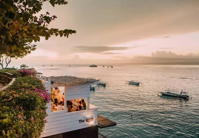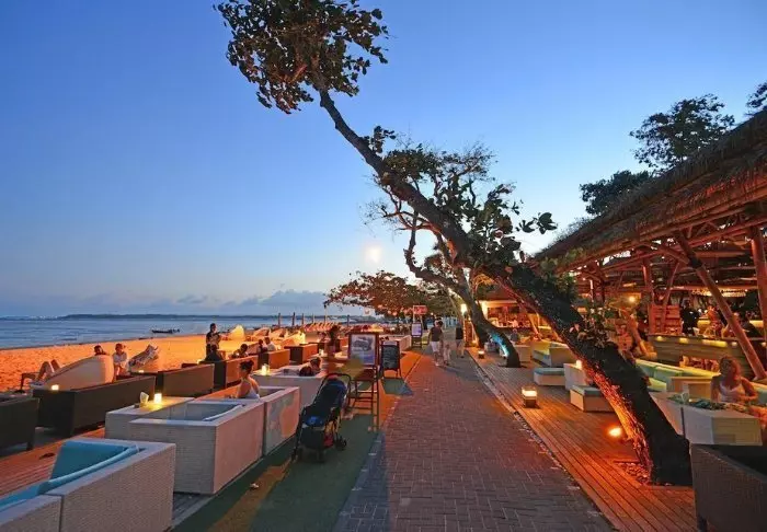Baren Tree Bar er bygd over tre nivåer og ligger ved siden av evighetsbassenget med flott utsikt over Sanur strand. Her kan du spise småretter og drikke øl, vin og cocktails i den forfriskende havbrisen.