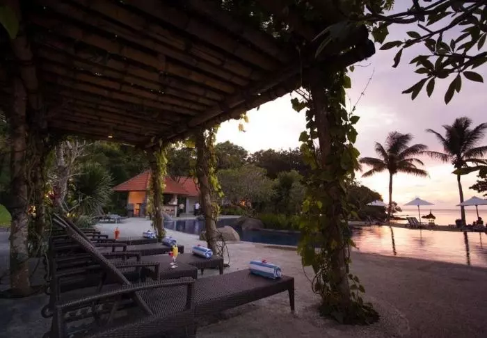 Pondok Santi Estate har privat strand med liggestoler og hengekøyer der du kan sole deg og skue ut over det turkisblå havet. Et par meter fra strandkanten er det gode snorklemuligheter, for under havoverflaten finner du fargerike koraller og fisker.