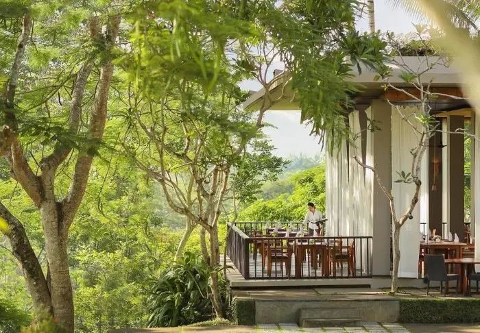 Når du blir sulten etter en opplevelsesrik dag, kan du glede smaksløkene med en kulinarisk opplevelse fra det lokale eller internasjonale kjøkkenet på en av hotellets tre restauranter. Du kan også nyte en iskald drink i hotellbaren, Tree Bar, med utsikt til Ubuds frodige natur.