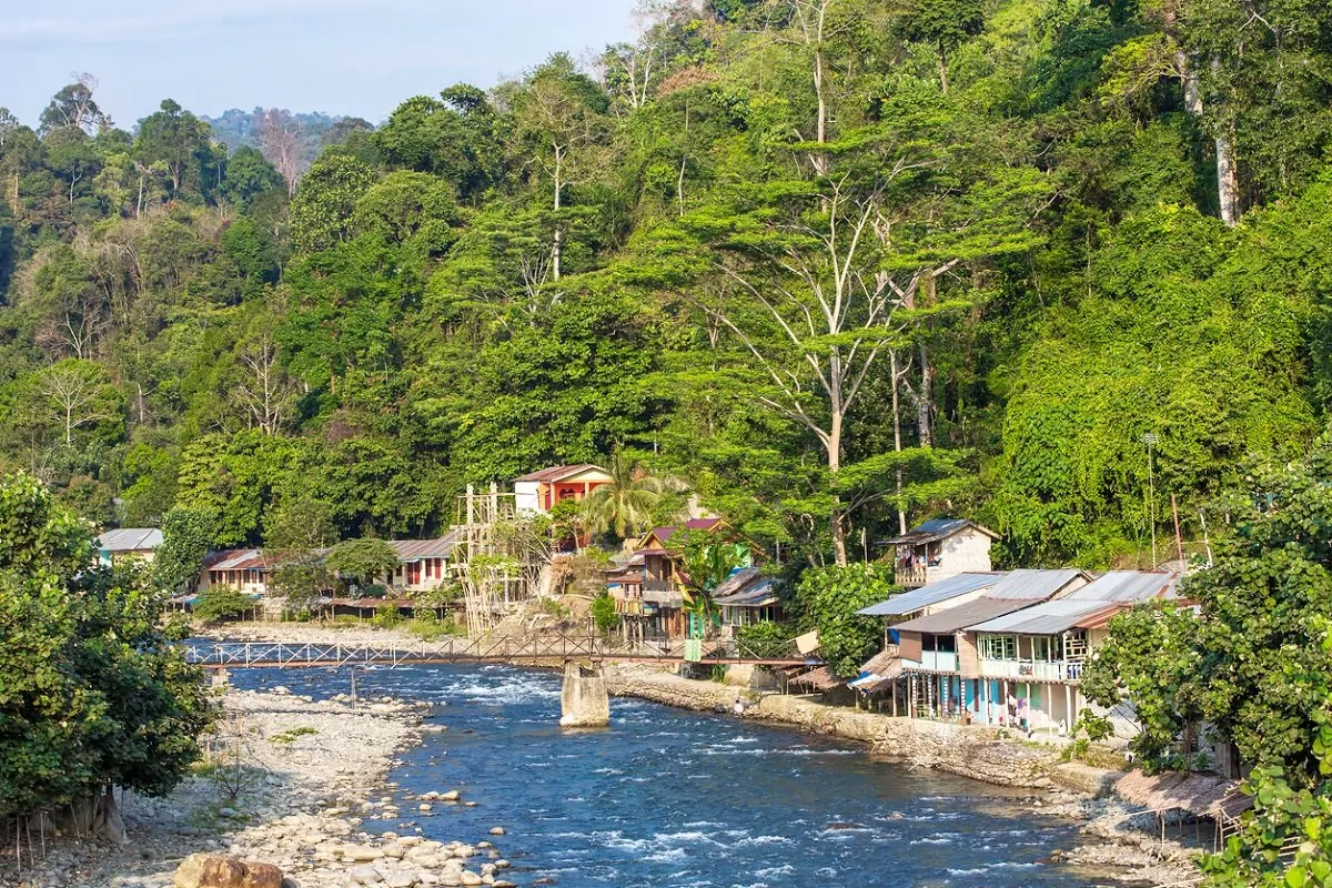 Rundt klokken 12.00 blir du kjørt til Bukit Lawang, cirka 100 km vest for Medan. På veien kommer du til å passere gummi- og palmeoljeplantasjer, og jo nærmere du kommer Bukit Lawang, desto mer dominerende blir regnskogen rundt byen.