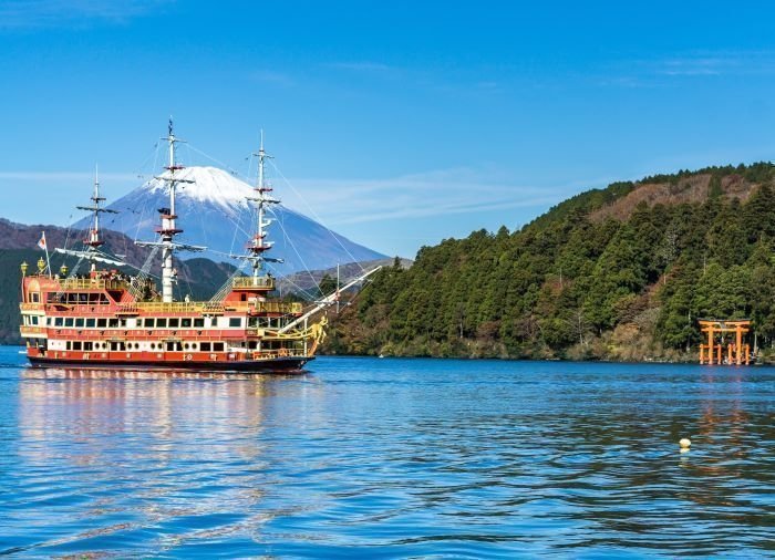 Når du er nede ved Togendai Station, går du ombord i en båt for å ta turen over den maleriske sjøen Ashi. Et vulkanutbrudd for 3000 år siden skapte det krateret som i dag er denne vakre kratersjøen. Fra båten kan du nyte den flotte utsikten over vannet og de omliggende fjellene som danner en flott ramme om sjøen.