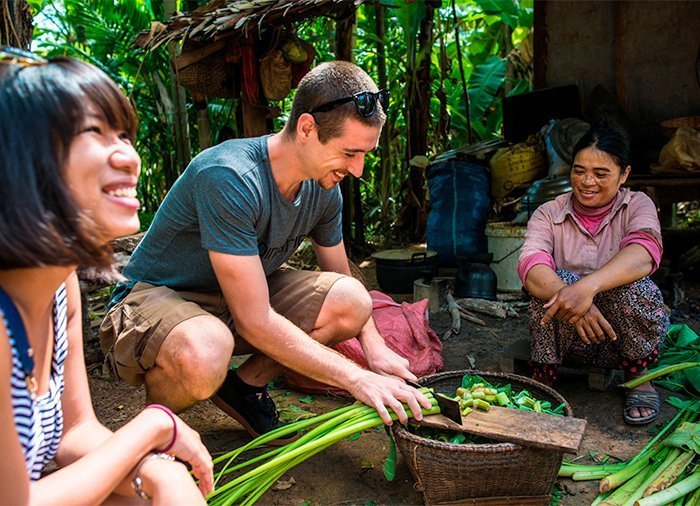 På denne halvdagsturen til en kokkeskole lærer du å lage kambodsjanske khmer-spesialiteter og støtter samtidig det lokale økologiske gårdsbruket hvor kokkeskolen ligger. Gårdsbruket støttes av den internasjonale organisasjonen Agrisud, som arbeider for økonomisk fremgang i landbrukssektoren gjennom støtte til små, familieeide gårder.