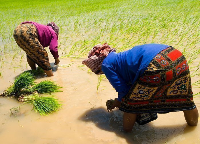 En tradisjonell khmerlunsj i landsbyen er inkludert.