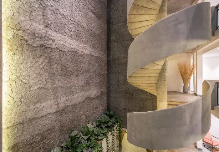 Hotellet er moderne og lyst innredet, med fine rustikke detaljer – legg spesielt merke til den snodde trappen, søylene og veggene. Flere steder på hotellet er det innredet hyggelige kroker der du kan sitte og slappe av med en god bok.