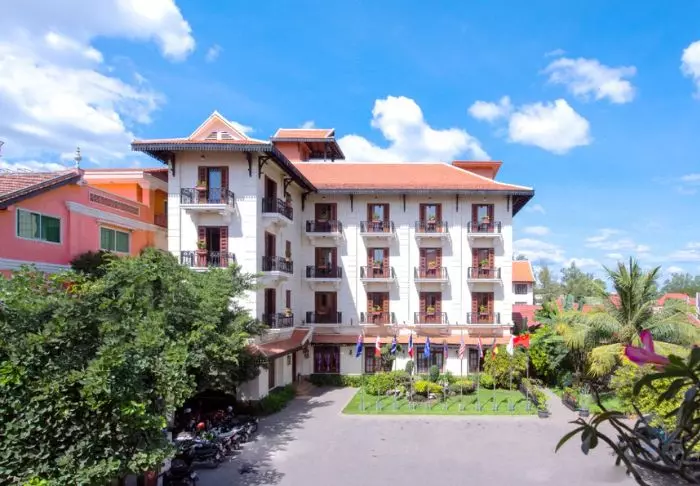 Steung Siemreap åpnet tidlig på 1920-tallet, og siden den gang er det blitt renovert i flere omganger. Av respekt for stedets historie har man valgt å beholde den opprinnelige franske kolonistilen. Hotellet består i dag av 76 elegante rom, som alle er innredet med flotte tremøbler, polerte tregulv, lydisolerte franske vinduer og smijernsbalkonger. Alle rom har Wi-Fi, aircondition, minibar, TV, telefon, safe samt kaffe- og tefasiliteter. På badet finner du badekar, toalettartikler, hårtørker samt badekåpe og tøfler.