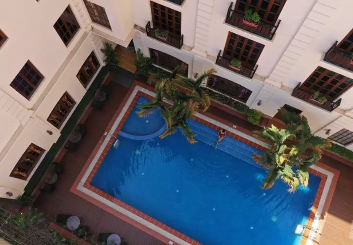 Steung Siemreap har dessuten et deilig bassengområde med palmer og tropiske trær, og både liggestoler og parasoller er tilgjengelige.