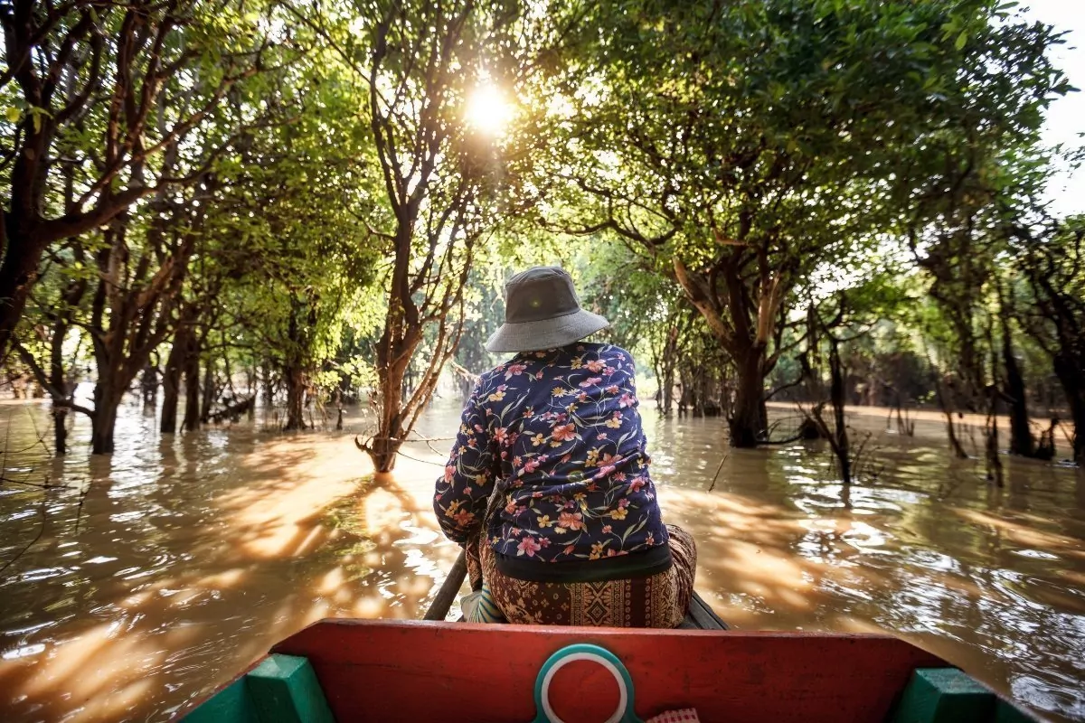 Her går du ombord i en båt som tar deg med ut til et av de mange fiskerleierne, Kompong Phluk. Her får du høre hvordan hverdagen er for de mange familiene her som primært livnærer seg av fiske. Familiene bor i karakteristiske, fargerike hus som står på høye stolper, slik at de takler den høye vannstanden i regntiden, når landsbyens små gater forvandles til små kanaler. I den tørre perioden, når vannstanden er lav, er det fritt utsyn til de høye stolpene.