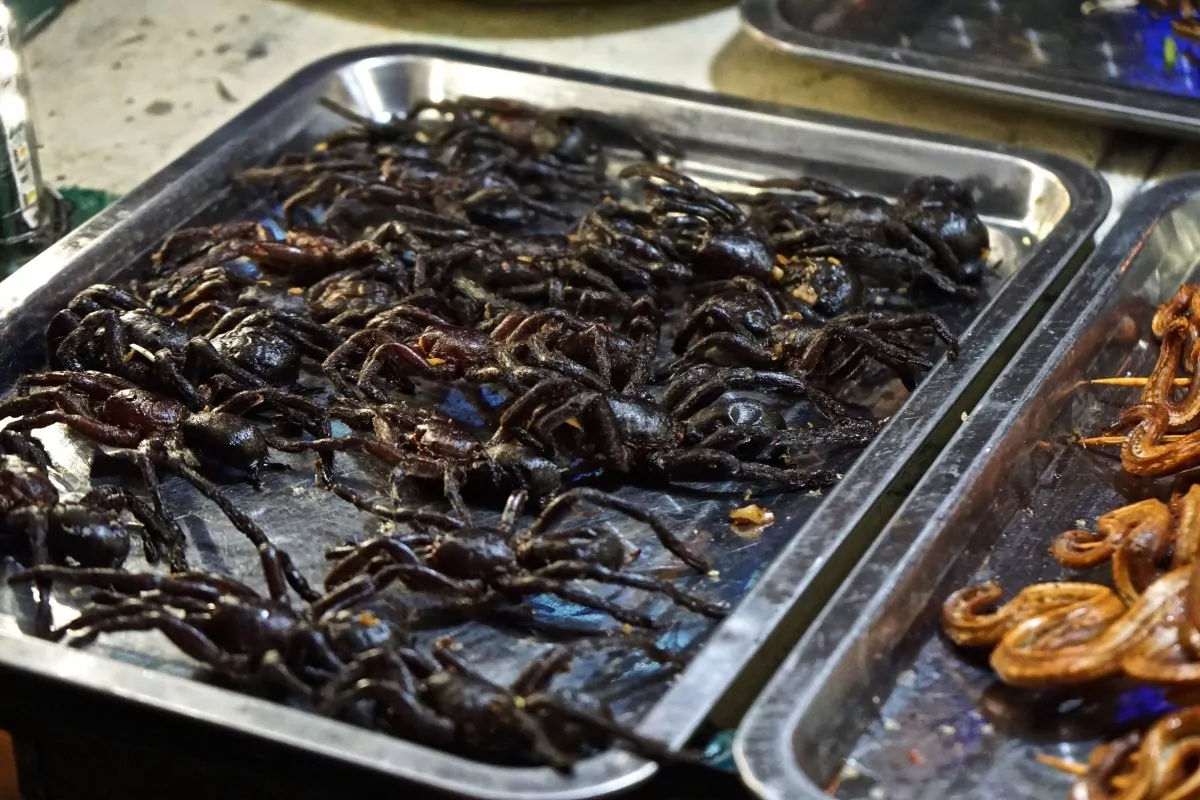 Du blir hentet på hotellet og starter turen mot Kambodsjas livlige og historiske hovedstad Phnom Penh. Underveis kan du beundre de vakre landskapene med rismarker og plantasjer. Vi stopper blant annet ved det berømte markedet i byen Skuon,der det selges spesielle kambodsjanske delikatesser som frityrstekte edderkopper. Kambodsjanerne reiser langveis fra til dette markedet for å kjøpe sine favoritter. De har tradisjon for å spise nesten alt, og her har du muligheten til å kikke på folkelivet eller kjøpe deg en smaksprøve.
