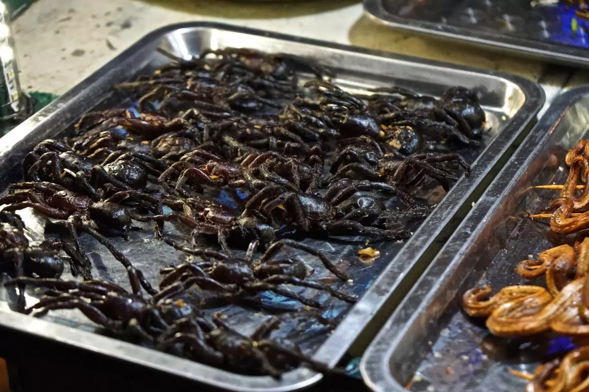 Gå gjennom kveldsmarkedet og sug til deg atmosfæren. Duften fra de mange matbodene med khmer-lekkerbiskener vil nok kanskje gi deg vann i munnen. Finn deg en saftig bit grillet kjøtt eller en pastarett og slå deg ned på en av de mange taburettene ved siden av lokale innbyggere som sitter og koser seg med en smårett. Hvis du tør, kan du også prøve grillede gresshopper på spyd. Maten kan du skylle ned med en kald, lokal øl, og det er flere typer å velge mellom.