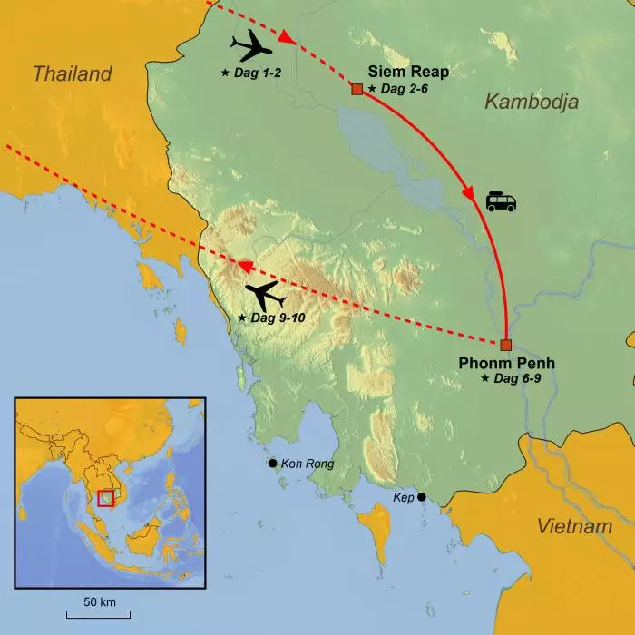 Med 4 netter i Siem Reap og 3 netter i Phnom Penh opplever du essensen av Kambodsja og de vakre landskapene på turen mellom Kambodsjas to viktigste byer.