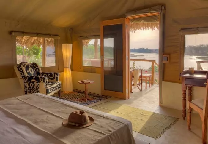 De 18 teltene har alle utsikt mot Galana-elven, som er Kenyas nest største elv. Alle teltene har egen terrasse slik at du får den best mulige utsikten til elven. Ja, selv fra bassenget er det utsikt til elven.