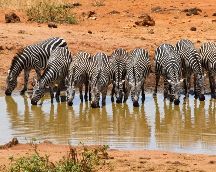 På dagens kjøretur blir det et stopp ved Mzima Springs – en rekke naturlige kilder omgitt av palmer og akasietrær, som produserer nok vann til å forsyne brorparten av byen Mombasa med vann. Her skal du ut på en rundtur ledsaget av en ranger. Hold utkikk etter krokodiller som ligger langs bredden, og flodhestene i vannet. Dette er også et utmerket sted å se fugler på, for eksempel isfugler.