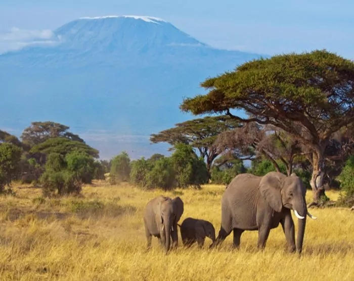 Nesten uansett hvor du går, vil du ha utsikt over Kilimanjaro, som ligger i Tanzania, men som trolig blir oftere fotografert fra Kenya-siden. I Amboseli kan du faktisk være heldig nok til å få det perfekte bildet av elefantene som vandrer over det pannekake-flate landskapet mens solen går ned, før de går inn i skogene ved foten av Kilimanjaro, der de tilbringer natten.