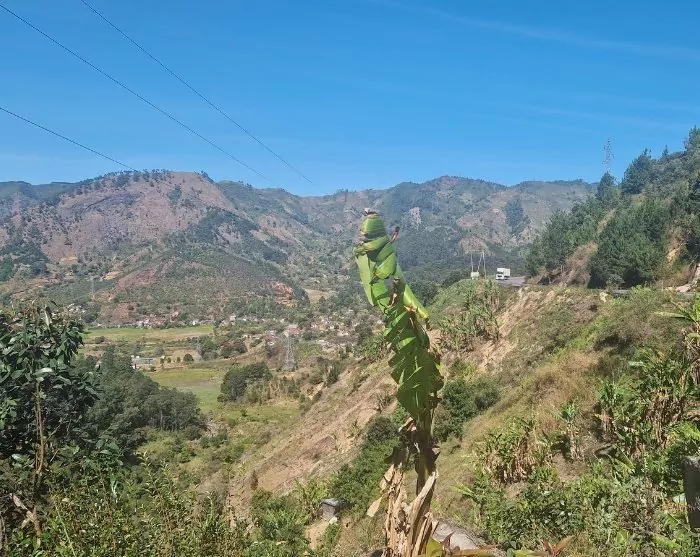 Etter et par timer med kjøring gjennom det kuperte platålandskapet med alle rismarkene, endrer landskapet seg. Åsene blir høyere, og skogene tettere. Her og der får du et glimt av elven nederst i dalførene.