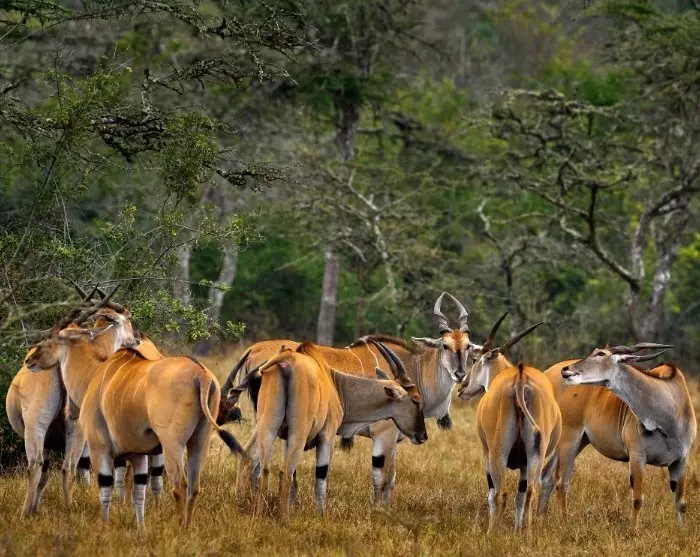 Reisen rundes av i Lake Mburo nasjonalpark. Den lille nasjonalparken er et av de få stedene i Uganda hvor det er mulig både å dra på natt-safari og guidet vandresafari.