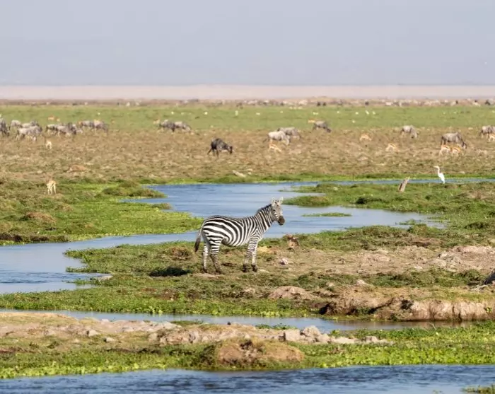 Den sparsomme vegetasjonen i Amboseli gjør det lettere å finne de ville dyrene, og i tillegg til elefanter vil du se mange sebraer, antiloper, giraffer – og sannsynligvis også løver.