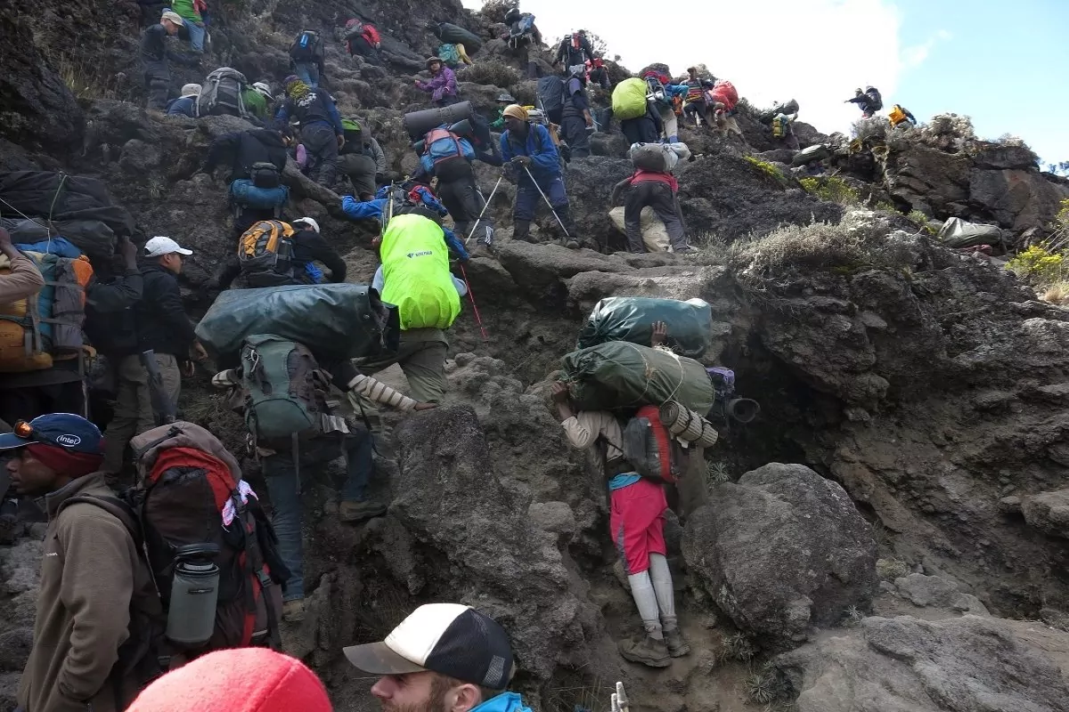 I dag vandrer du østover. Landskapet blir tørrere, barere og mer steinete jo høyere opp du kommer. Underveis bliver du belønnet med flott utsikt til Kibo og Mt. Meru som stikker opp av de hvite skyene bak deg. Etter et par timers vandring når du det berømte Lava Tower som stammer fra Kilimanjaros tidligere vulkanske aktivitet.