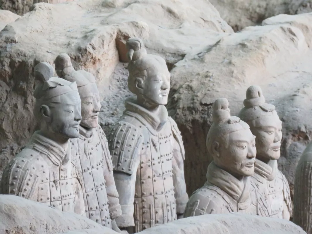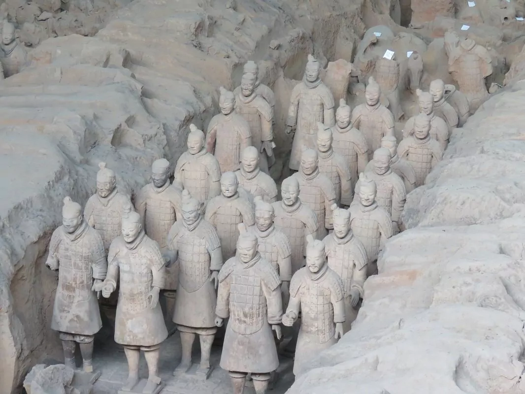 I 1974 fant bønder fragmenter av en skulptur i menneskestørrelse 45 km utenfor Xi’an. Arkeologer ble tilkalt og fortsatte med utgravingen, som resulterte i verdens største funn av underjordiske skulpturer. Over 7000 terrakottakrigere, hester og vogner ble oppdaget. Krigerne måler mellom 175 cm og 190 cm og har alle forskjellige ansiktstrekk, frisyrer og påkledning. De er oppstilt på rekke, klar til kamp, i nærheten av keiser Qin Shi Huangs gravsted. Det sies nemlig at krigerne ble laget for å beskytte herskeren sin i livet etter døden.