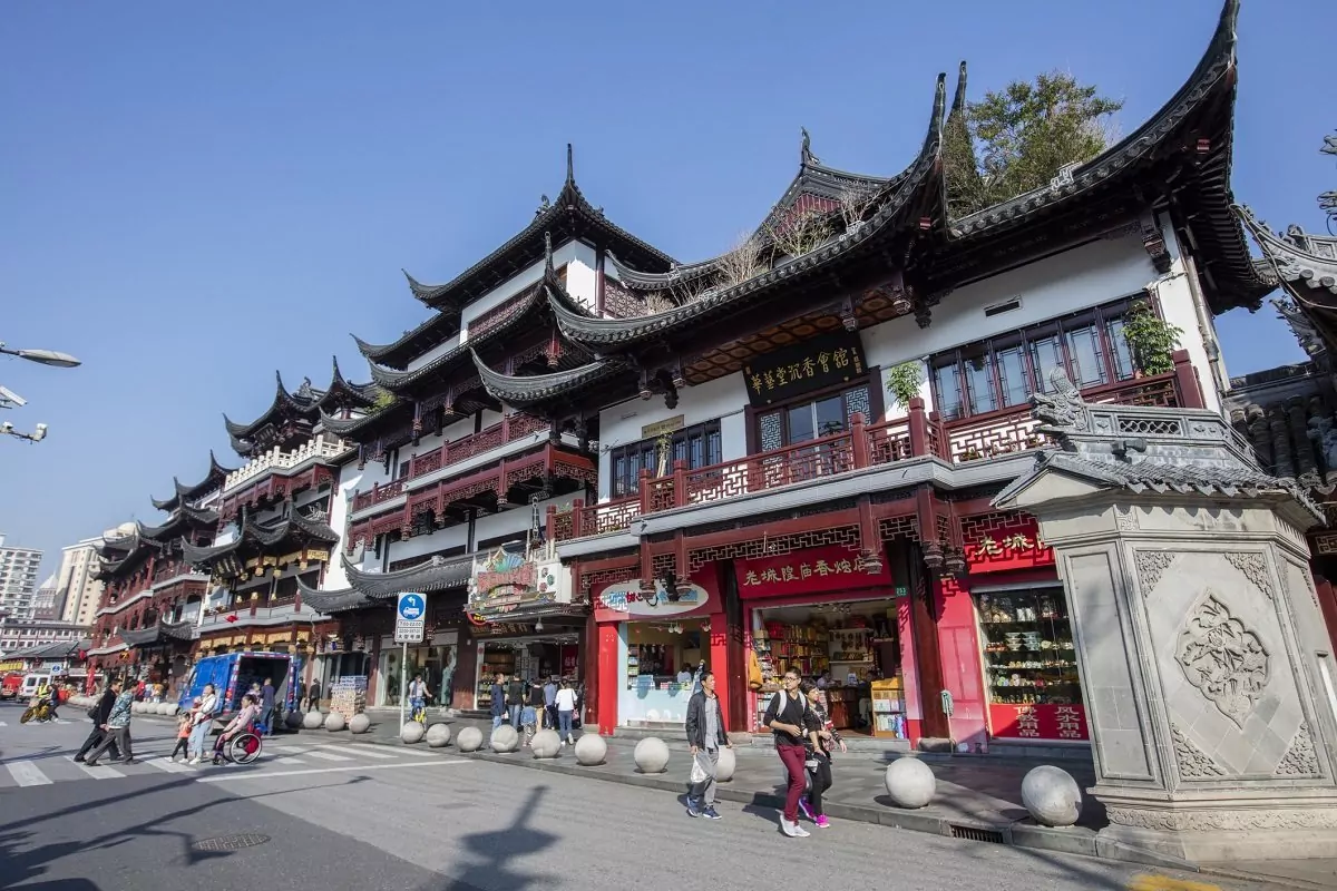 Fra Shanghai Old Street fortsetter turen til Jiuqu-broen, også kjent som Nisvingsbroen, som snor seg over en liten sjø med karper. Her står Shanghais eldste tehus, Huxinting, fra 1855. Jiuqu-broen fører deg videre til inngangen til Yuyuanhagen, som er Shanghais fineste hage.