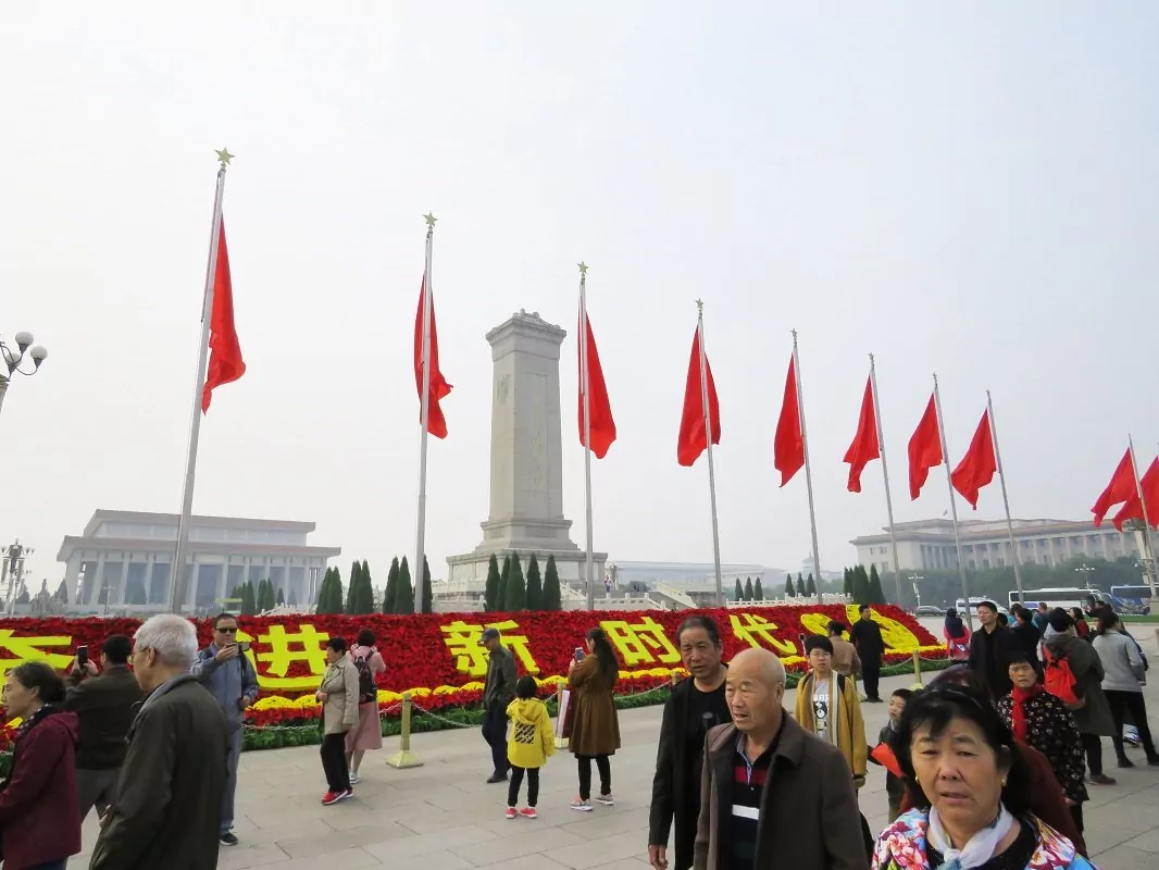 Du fortsetter herfra til Den himmelske freds plass. Plassen er ikke bare en av de mest berømte plasser i verden, den er også den største i verden med sine 880 meter fra nord til sør og 500 meter fra øst til vest.