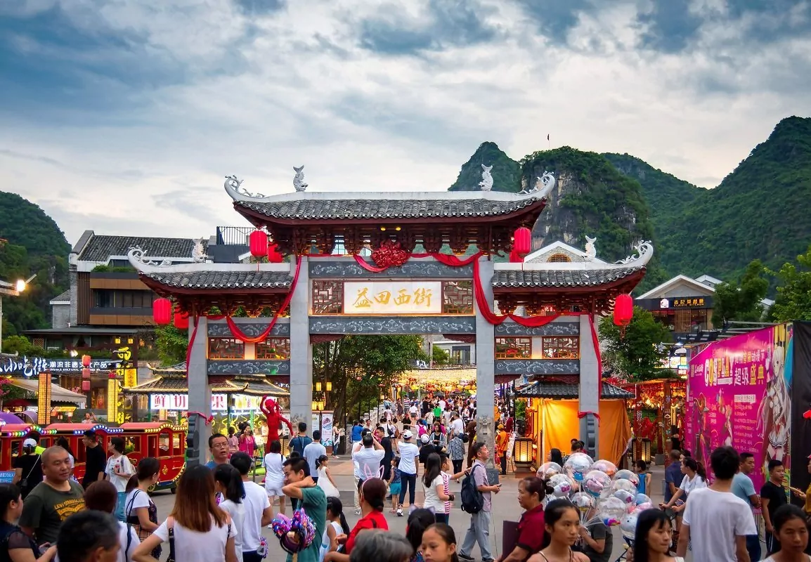 I selve byen er det et yrende liv. Her finner du rekker med restauranter og barer, og om du liker shopping er West Street virkelig verdt et besøk. Dette er Yangshuos eldste gate med en historie som strekker seg over 1.400 år. Gaten er full av restauranter, kafeer og butikker hvor du kan kjøpe smykker, klær, sko, vifter, produkter laget av bambus og bøffelhorn, samt porselen og mye mer.
