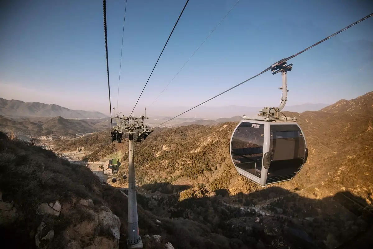 Muren er delt opp i flere forskjellige områder, og du besøker det mindre turistifiserte området Mutianyu. Du og guiden blir satt av på parkeringsplassen like ved Mutianyu, og herfra går dere opp en bratt vei til kabelbanen, som fører opp til muren.