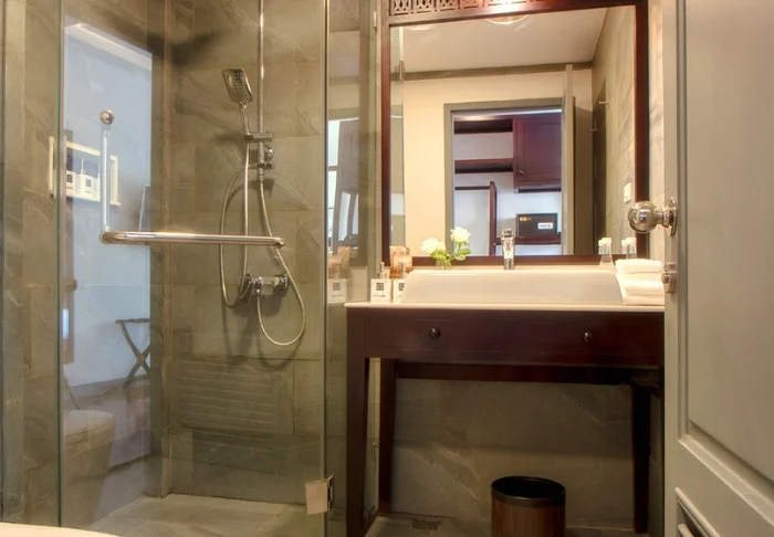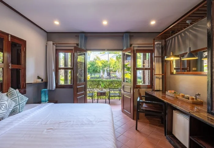 Du bor som standard på et superior-rom med utsikt mot hotellets lotusdam, der du kan sitte på terrassen og nyte synet av det stille vannet og de grønne omgivelsene. Rommene har en enkel og elegant innredning med tregulv, store vinduer og lyse farger som gir en fredelig stemning. Du har aircondition, minibar, TV og Wi-Fi, og badet er utstyrt med dusj og andre nødvendige fasiliteter.