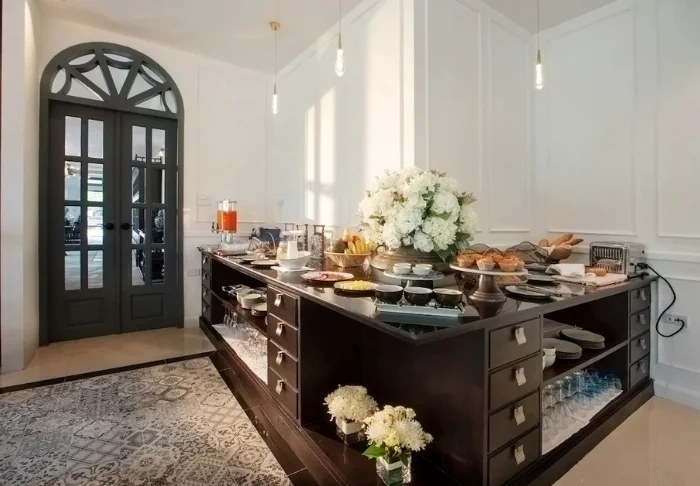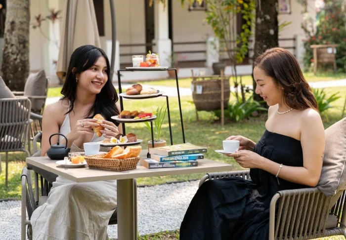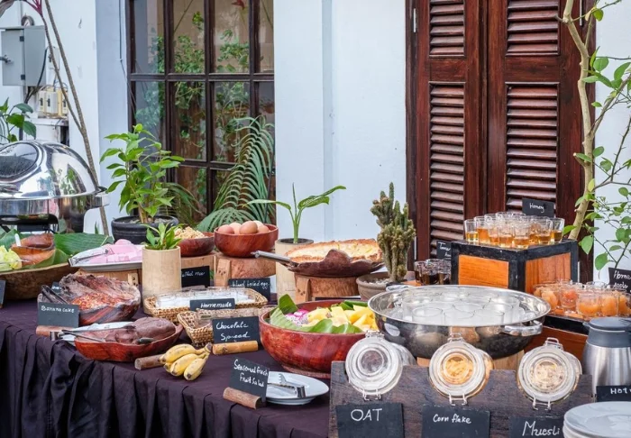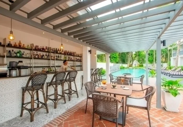 I hotellets restaurant serveres både lokale og internasjonale retter, og du kan starte dagen med frokost i den åpne paviljongen med utsikt til hagen.