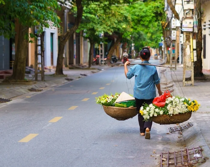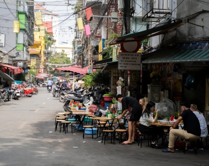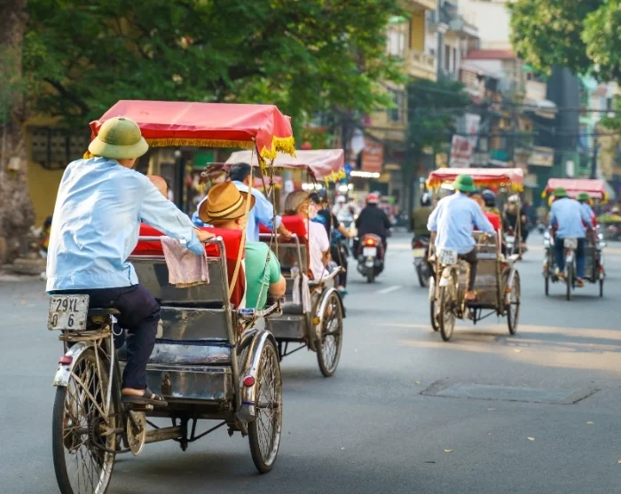 Turen fortsetter i en sykkeltaxi – også kjent som cyclo – gjennom det gamle kvarterets labyrint av smale gater og yrende handelsliv. Det gamle kvarteret er kjent for sine 36 gater, som opprinnelig fikk navn etter varene som ble solgt her: bambus, silke, papir og blikk. Mange av gatenavnene lever videre i dag, og atmosfæren er fylt av lokal sjarm, der innbyggerne fortsatt handler, småprater og serverer rykende varm pho fra gatekjøkkenene.