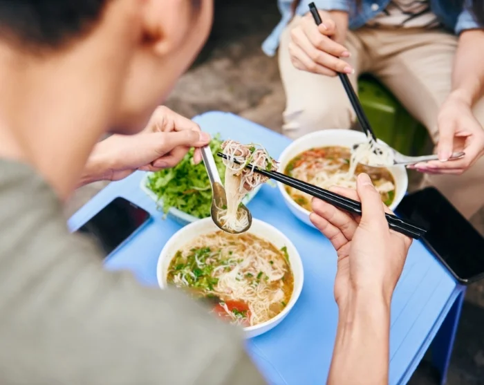 Til lunsj kan du jakte på Hanois berømte street food. Prøv en rykende bolle pho, nyt duften av grillede bun cha eller ta med deg en sprø banh mi på farten.
