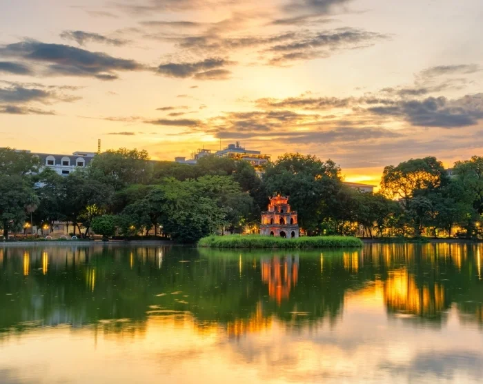 Vi anbefaler virkelig å utforske de smale, livlige gatene i gamlebyen, der hver lille gate skjuler dufter, lyder og scener fra det vietnamesiske hverdagslivet. Du kan også ta en rolig spasertur rundt den fredelige Hoan Kiem-sjøen, som med sine skyggefulle trær og lokale folkeliv er et populært tilfluktssted midt i storbyen.