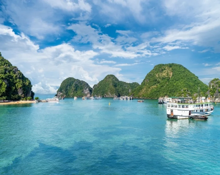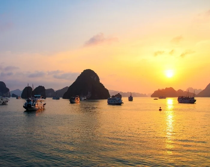 Fra Hanoi går turen til Ha Long-bukten, hvor et minicruise venter. Kalksteinsklippene reiser seg dramatisk fra havet, og du besøker grotter, perlefarmer og vakre utsiktspunkter.