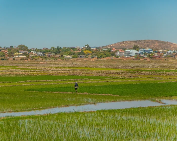 Allerede før du passerer bygrensen, kan du se de første rismarkene som anlegges nær sagt overalt det finnes en ledig jordflekk. Det sies av og til at malagasy-folket er blant dem i verden som spiser mest ris daglig.