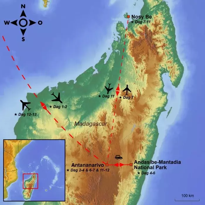 I dag er det avreise fra den valgte flyplassen med mellomlanding(er) underveis. Reisen går til Madagaskar, den store røde øya i Det indiske hav.