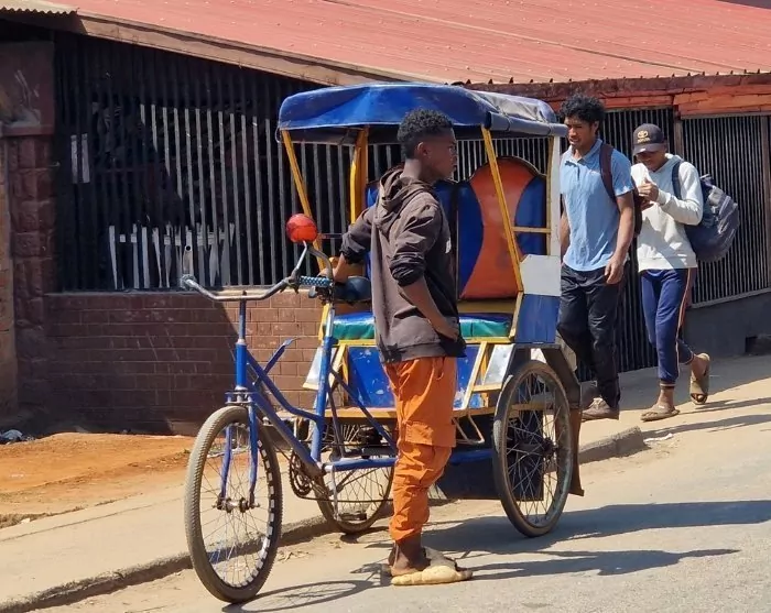 Når du ankommer Antsirabe, Madagaskars tredje største by, er det dags for lunsj før du legger ut på en rickshaw-tur. Det lokale navnet på en rickshaw som trekkes av mennesker, er en “pousse pousse”.