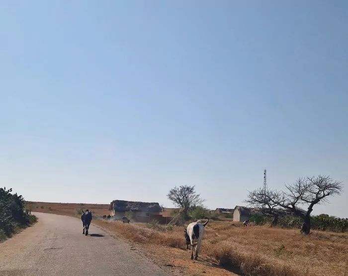 Fra Ihosy er det litt over en times kjøretur før du kommer til dagens endelige destinasjon, Ranohira. Underveis kjører dere gjennom et slettelandskap, og det er lett å forstå hvorfor Bara-folket holder storfe her: Store, øde vidder med knehøyt gress så langt øyet kan se – ja, det ser nesten ut som en østafrikansk savanne. Iblant kan det sykle en og annen ung mann langs veien. Hvor han kommer fra og hvor han er på vei her midt i ødemarken, er ikke alltid lett å gjette seg til.