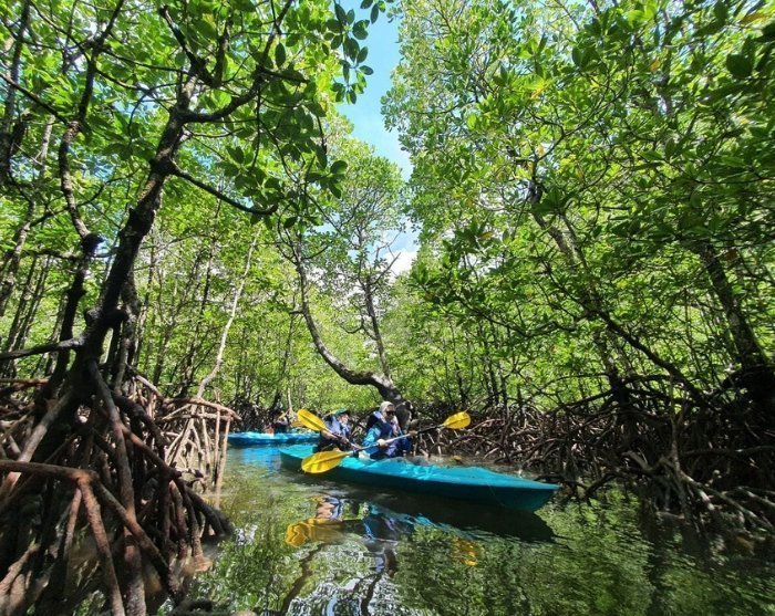 Det er en magisk opplevelse å padle gjennom de stille vannveiene omgitt av naturens lyder. Underveis kan du være så heldig å få øye på slanger, otere, varaner og en mengde ulike fuglearter. Det er også sannsynlig at du blir møtt av de nysgjerrige makakene som trives i mangroven.