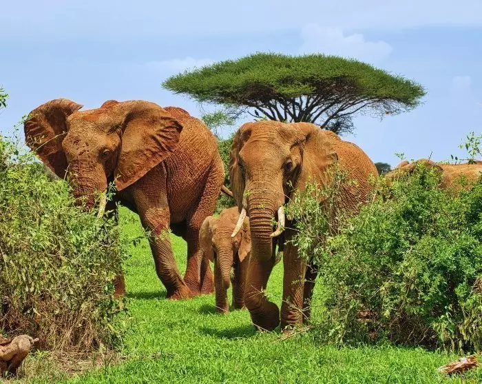 Tsavo nasjonalpark er Kenyas største nasjonalpark og består egentlig av to nasjonalparker, Tsavo East og Tsavo West. Tsavo East er kjent for sin knallrøde jord som gir mange av dyrene, som elefanter og sebraer, et særpreget rødt skjær. I Tsavo West er landskapet fascinerende med lavamarker, varme kilder og en tett vegetasjon av både palmer og akasietrær. I parken kan du være heldig å møte både flodhester og krokodiller.