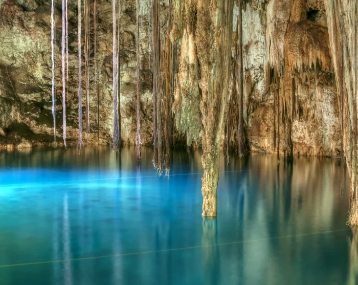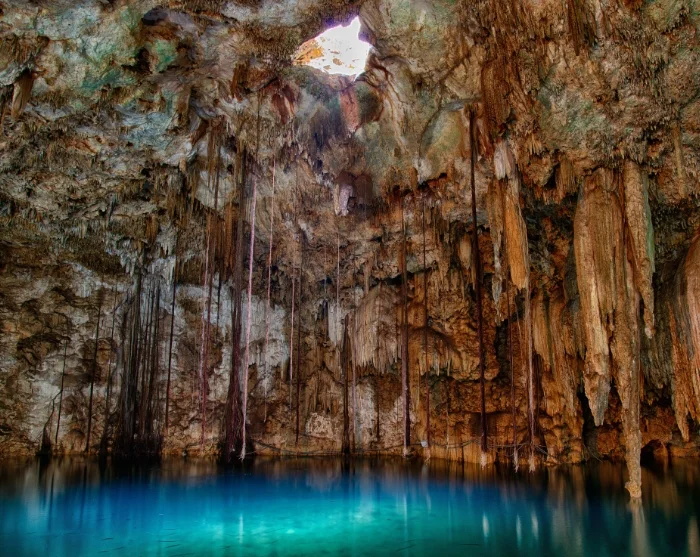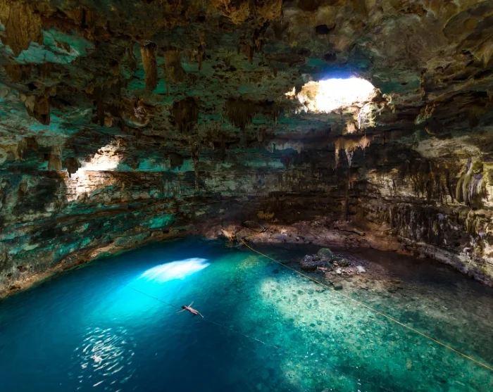 Neste stopp er Dzitnup, hvor du igjen får muligheten til å bade i krystallklart vann i de fascinerende cenotene X’Kekén og Samulá. Disse underjordiske vannhullene er kjent for sine imponerende dryppsteinsformasjoner og for lyset som strømmer ned gjennom åpninger i fjellet, noe som gjør stedet ekstra magisk.