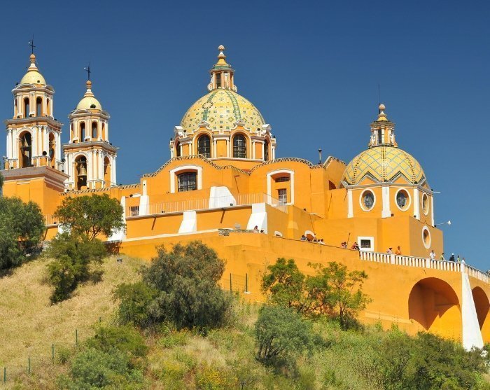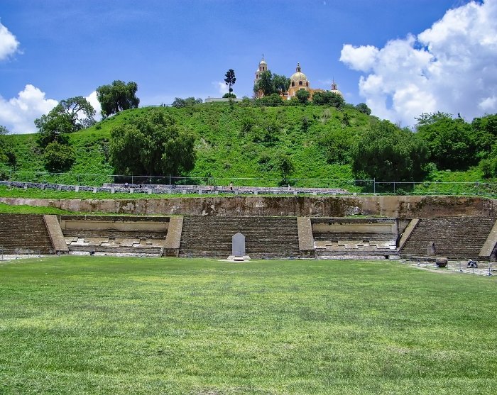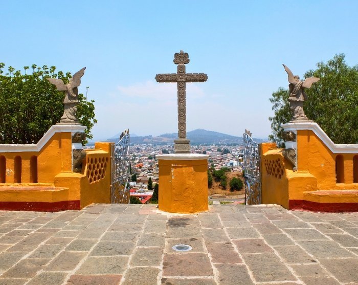 Når du ankommer Cholula-ruinene, vil du oppleve verdens største menneskeskapte pyramide, ”Tlachihualtepetl”. Pyramiden ble bygd i flere faser og antas å ha blitt påbegynt ca. 300 år f.Kr. Det er et fascinerende syn som i dag står som et vitnesbyrd over den gamle sivilisasjonen som en gang hersket i området. Guiden din vil fortelle deg mye mer om dette.