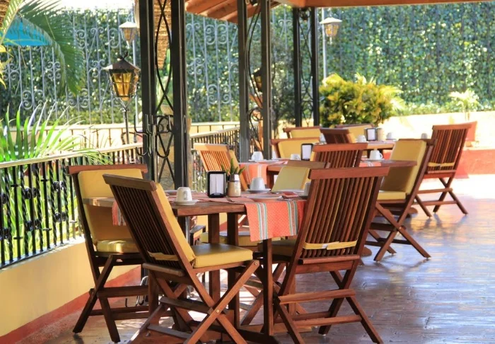 Frokosten serveres i den koselige gårdshagen, ”El Patio”. Her kan du også bestille lunsj og middag og smake på forskjellige tradisjonelle meksikanske retter. Roomservice er også tilgjengelig dersom det frister.